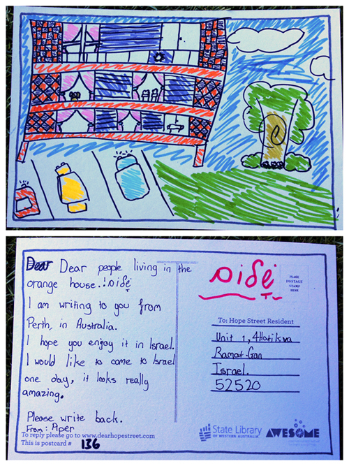 אני כותבת מפרת’, באוסטרליה. אני מקווה שאתם נהנים בישראל. אני רוצה יום אחד לבקר בישראל – היא נראית מדהים.