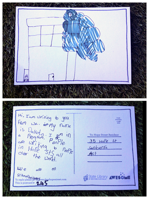 Dear Dakota – I think our post carrier deliver your letter to us at 31 Hope Street as 35 is currently empty. We will keep your postcard safe and deliver it to our new neighbours once they move in. I know that they will find it a great welcome to Hope Street. We have live here for several years and were very happy to move into a street with such a great name. I hope you had lots of fun creating your postcards and posting them around the world. Best wishes to you and your family