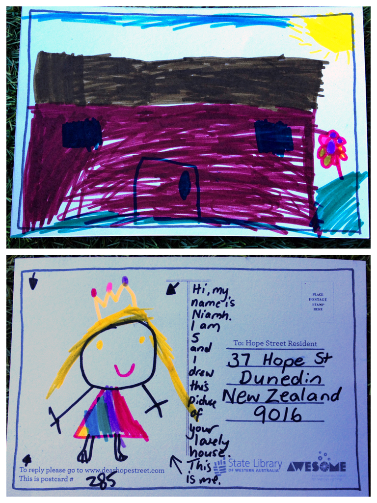 Thanks for your cool postcard! the pictures you drew were really awesome :) what a lovely surprise to find in the mail.