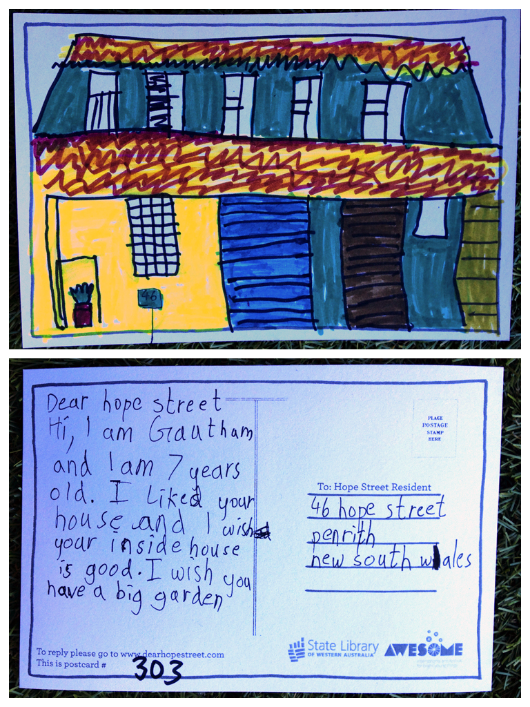 Hello , i’m Caitie im 16 years old, thank you for the beauitful post card its on our fridge your drawing is amazing hope to hear from you again soon :)