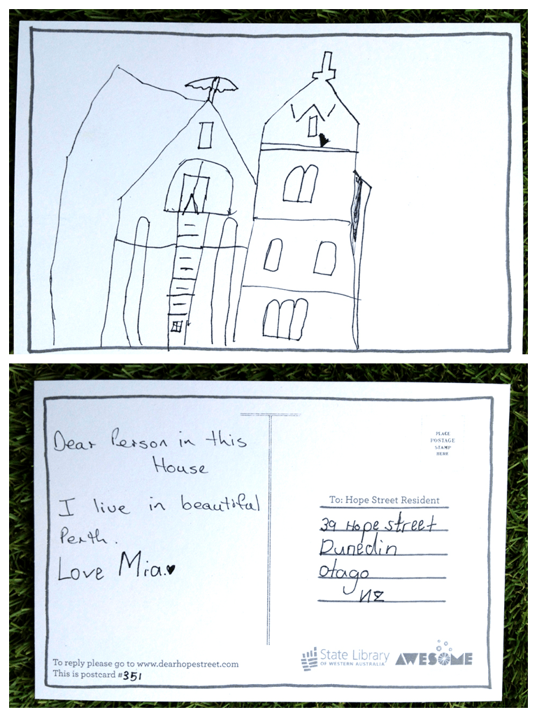 Thank you so much for your lovely postcard. What a fantastic drawing of our church It is very old and was built way in 1874, meaning that it is nearly 140 years old!! There weren’t many buildings around when it was built and there weren’t any cars either. I like the way you have tried to make it look 3D.
