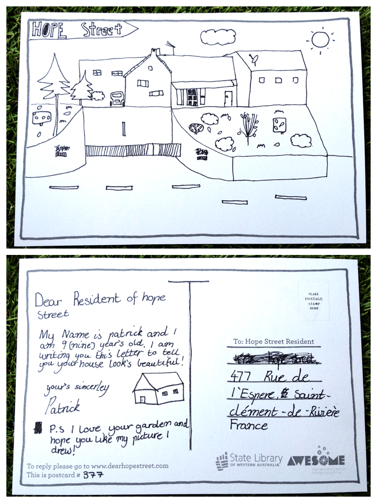 Je m’appelle Patrick et j’ai 9 (neuf) ans. Je vous écris pour vous dire que votre maison est belle.