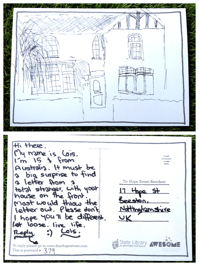 Thank you for lovely postcard. It was a surprise – but a pleasant one!