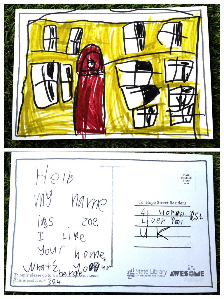 I loved getting your postcard and I like your drawing of my house. My house is over 200 years old.