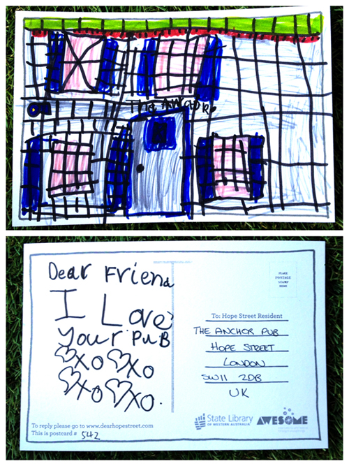 Thank you for the post card :) I love the drawing! It was a lovely surprise in the Mail! I will put it up behind the bar for all of our customers to see :) x