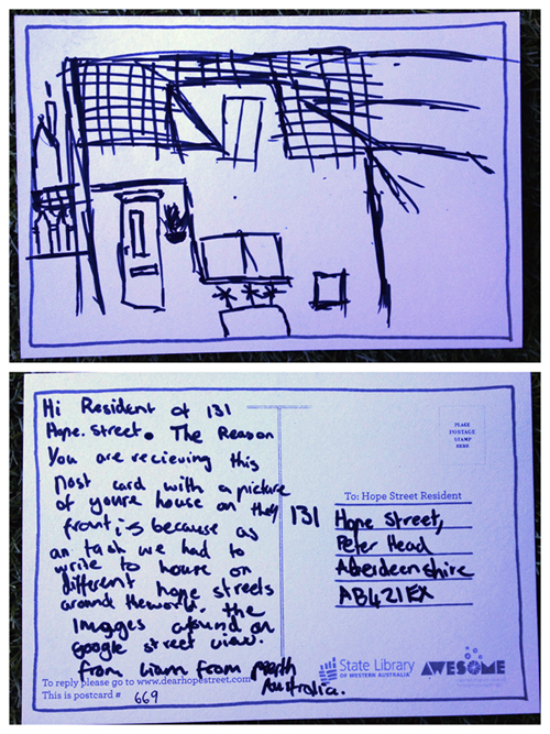 I was delighted to receive your postcard at lunchtime today. Your drawing was very good and looks exactly like my house.