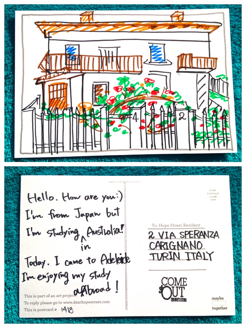 Translation: Ciao. Come stai? Io sono di Giappone ma sto studiando in Australia! Oggi sono venuto a Adelaide. Mi sto godendo il mio studio all’estero!