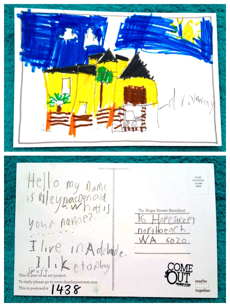Hello Riley, Thank you so much for the beautiful postcard of our house that you have drawn!!! You must be very good at art as your picture looks just like our house. We are a family of 5, mum, dad, 2 boys aged 18 & 19 and a girl aged 15.