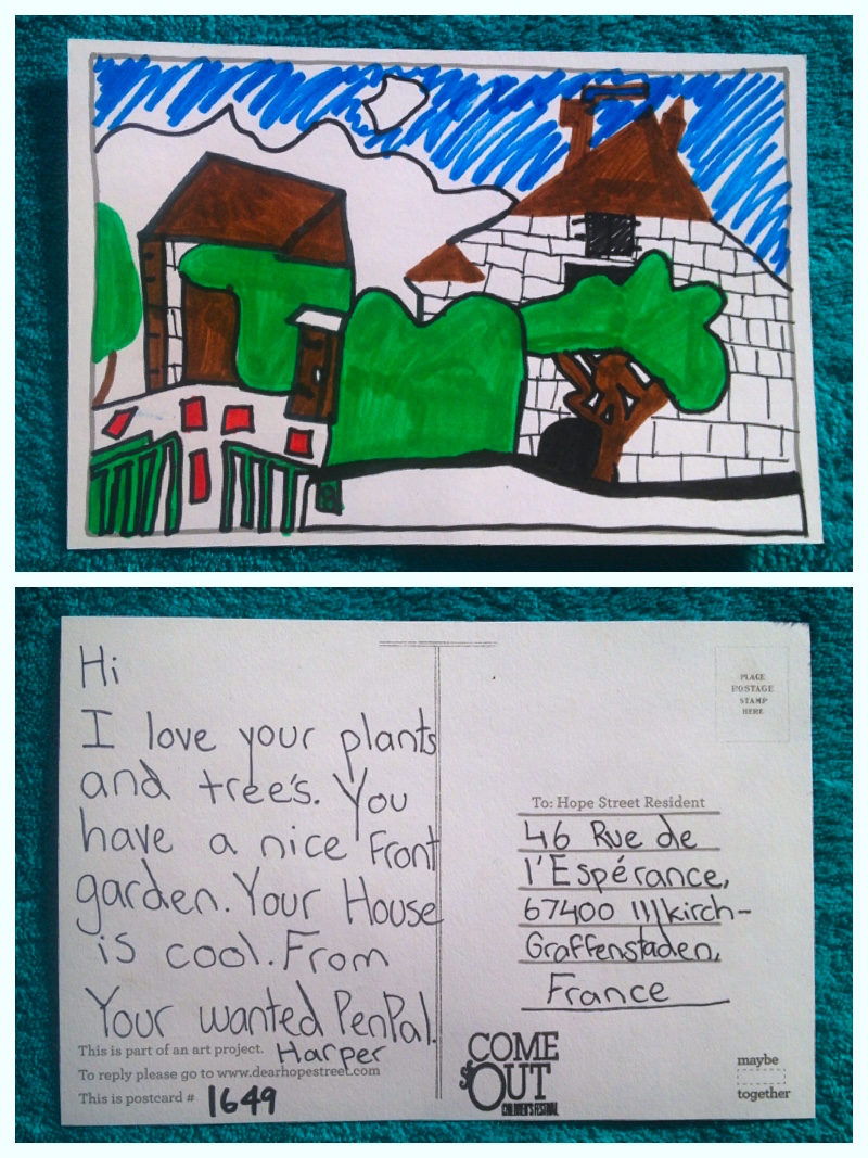 2. My step-mother who doesn’t speak english has brought us the card (we live near the house : https://www.google.fr/maps/@48.520088,7.714545,3a,75y,312.99h,90.47t/data=!3m6!1e1!3m4!1sEs4YhxnjiX-uD0sSXdhflg!2e0!7i13312!8i6656 and we are amazed by your project.