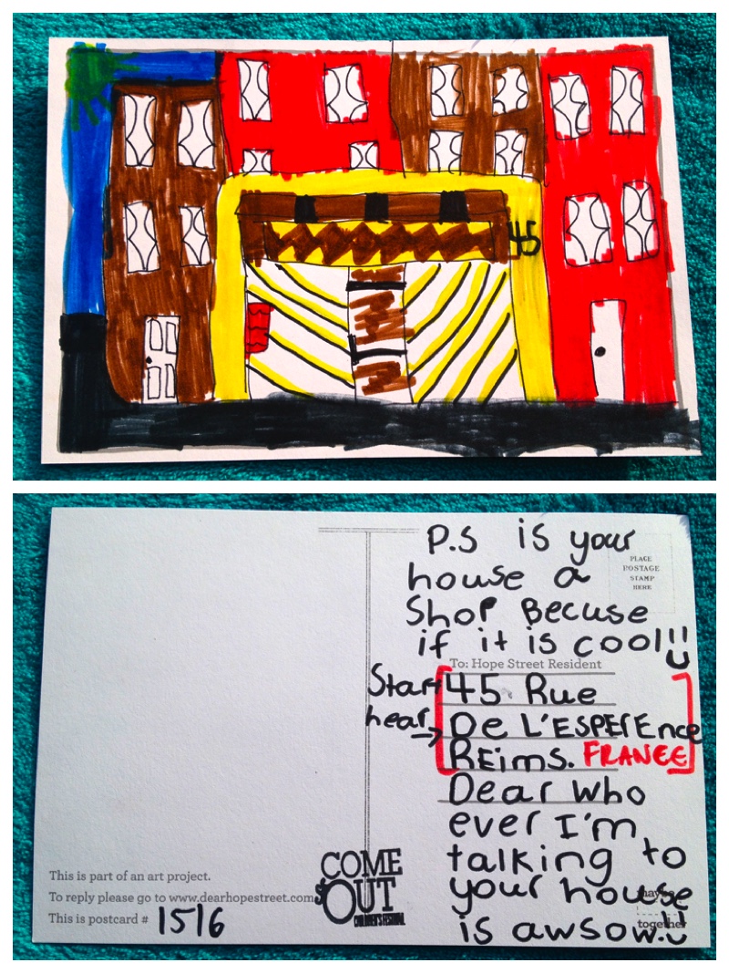 Translation: Cher celui à qui je parle. Ta maison est géniale. NB: Ta maison est-elle un magasin? Si c’est le cas, elle est cool!