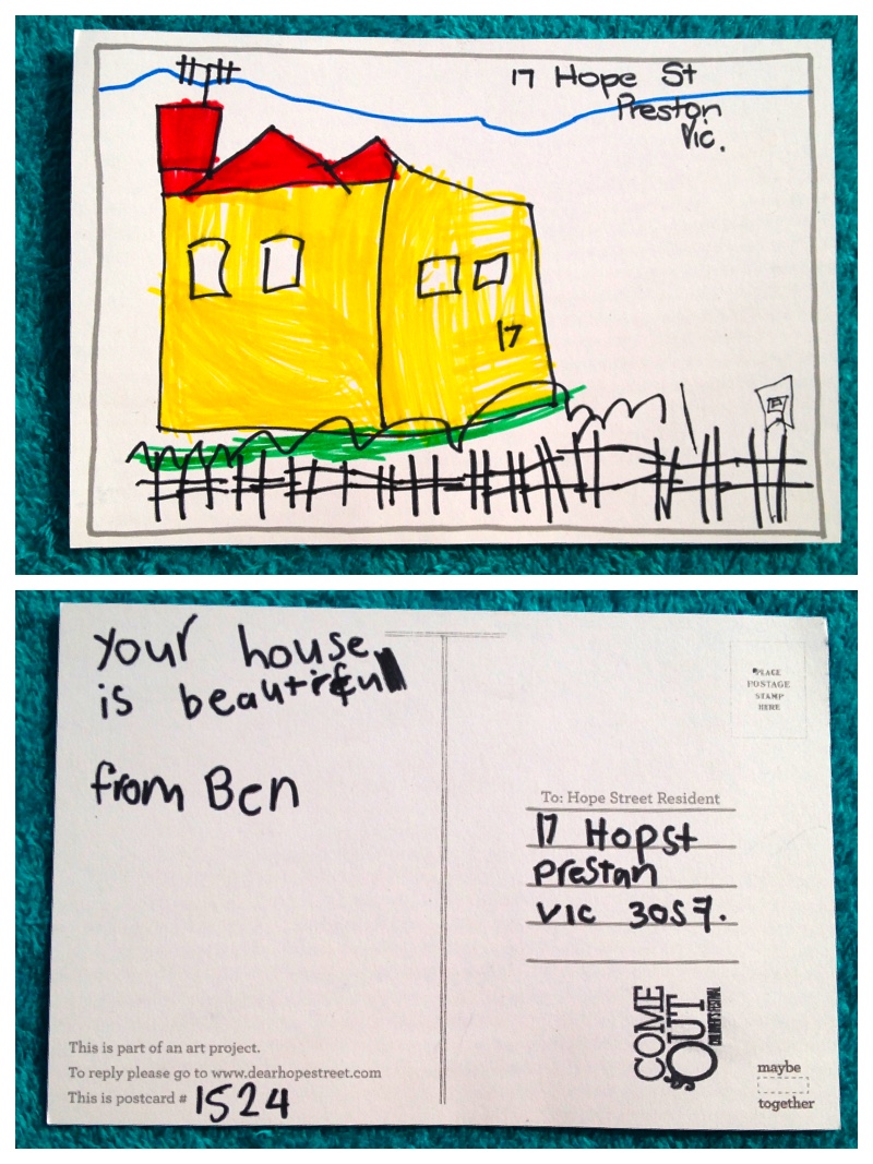 Dear Ben. Thank you for your card and picture of house. I have lived here for 63 years .Your drawing is lovely and I will put the picture on my fridge. Thank you. Have a good day.