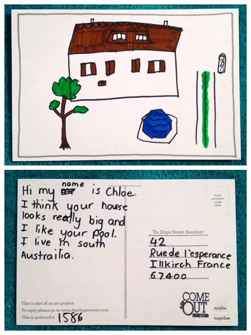 Translation: Salut, mon prénom est Chloe. Je pense que ta maison ressemble vraiment grande et j’aime ta piscine. Je vis au sud de l’Australie.