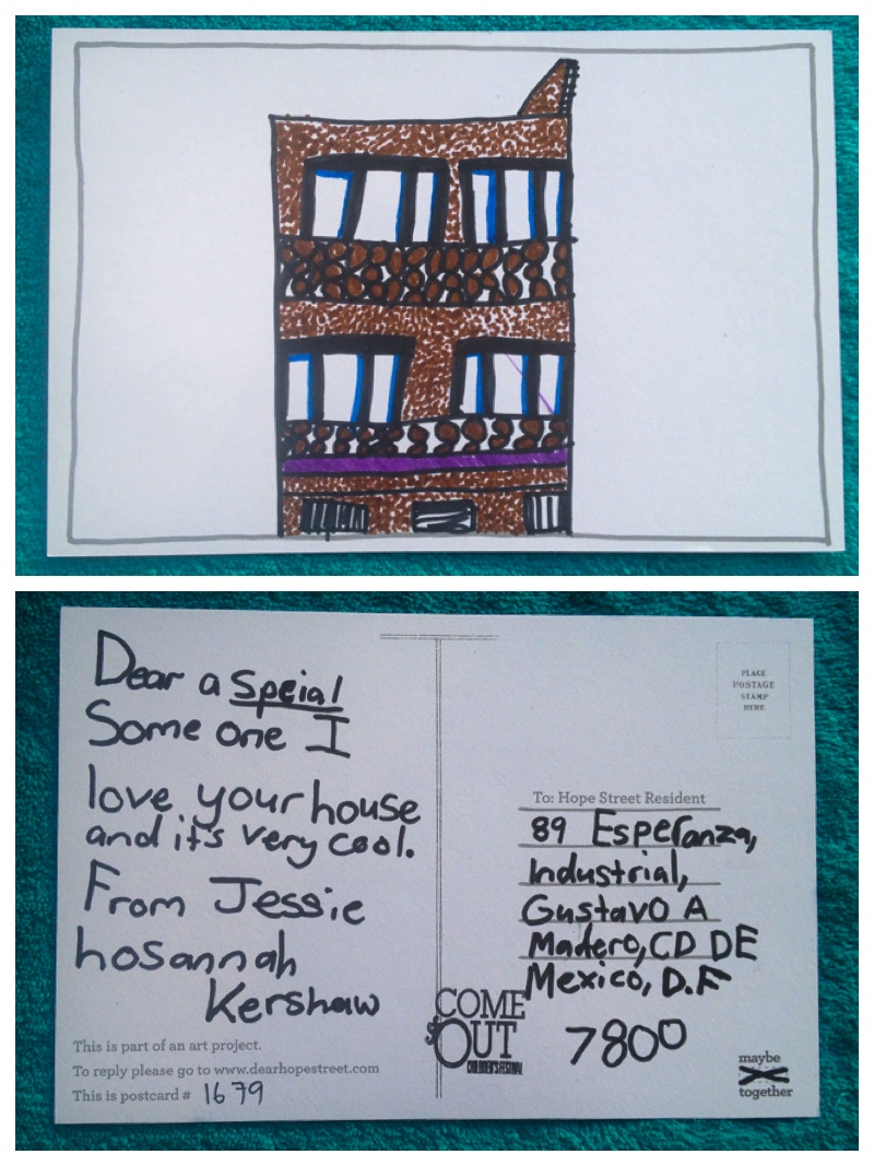 Translation: Estimado alguien especial. Me encanta tu casa y es muy agradable. De Jessie
