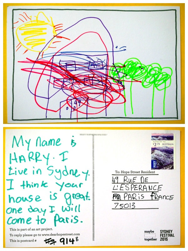Mon nom est Harry. J’habite à Sydney. Je pense que votre maison est grande. Un jour je vais venir à Paris.