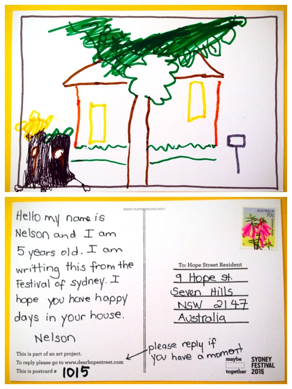Thank you very much for the beautiful postcard! I hope that you had a wonderful time at the Sydney Festival.