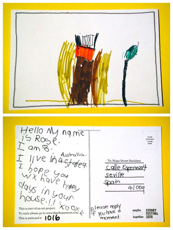 Translation: Hola. Mi nombre es Rosa. Tengo 8 años. Vivo en Australia. Espero que tenga unos días felices en su casa.