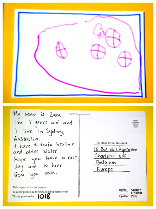 Mon nom est Zara. J’ai 4 ans et j’habite à Sydney, Australie. J’ai un frère jumeau et une sœur aînée. J’espère que vous passez un bon moment et que vous m’écrivez.