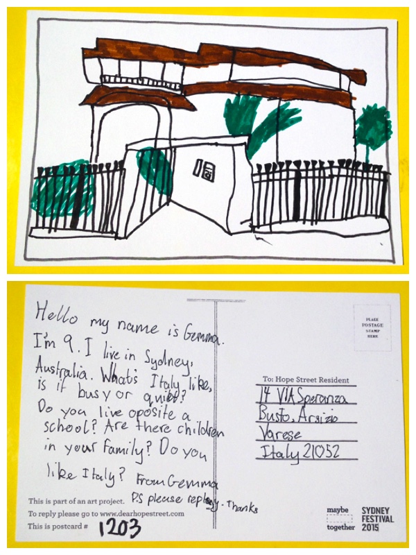 Ciao. Il mio nome è Gemma. Ho 9 anni. Io vivo a Sydney, in Australia. Como sta l’Italia, mossa o silenziosa? Vivi di fronte ad una scuola? Ci sono dei bambini nella tua famiglia? Ti piace l’Italia? Da Gemma. PS. Ti prego di rispondere. Grazie.