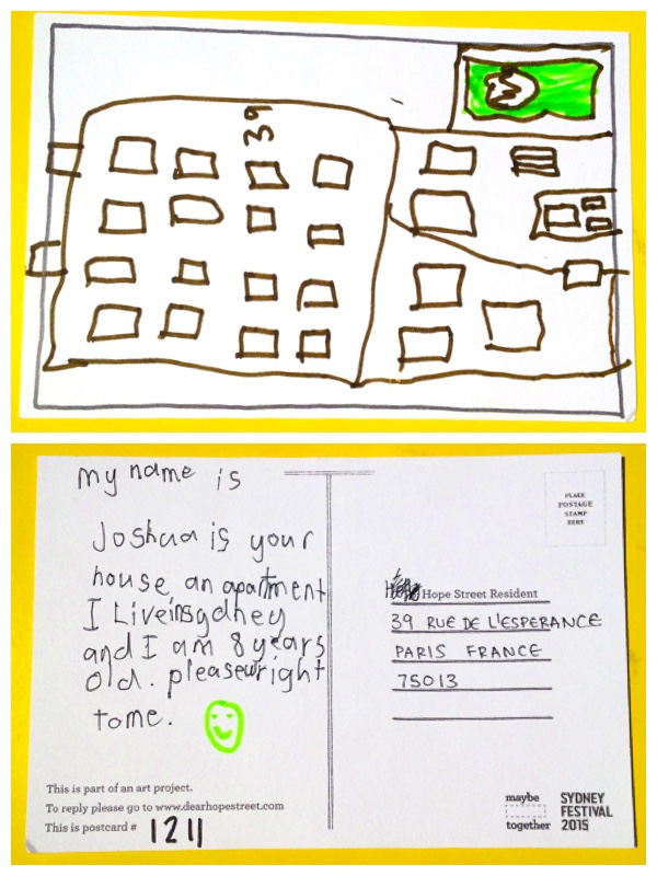 Translation: Je m’appelle Joshua. Est votre maison un appartement ? J’habite à Sydney. J’ai 8 ans. S’il vous plaît, écrivez-moi.