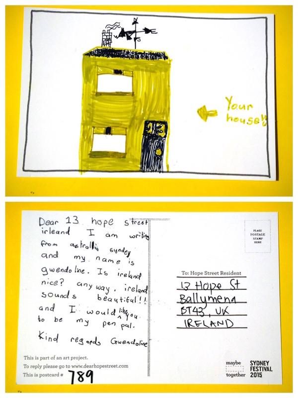 Dear Gwendoline, My name is Tomas, well Im from Czech Republic, but last almost two years me and my friend living in Northern Ireland, on 13 Hope street. Northern Ireland is s part of United Kingdom, its small country with many views, its pretty nice country, with very windy a rainy weather;-) I hope that you are well and happy. Thanks for your postcard, I like your picture, beacase is realy similar with our house, good job! So have a nice day