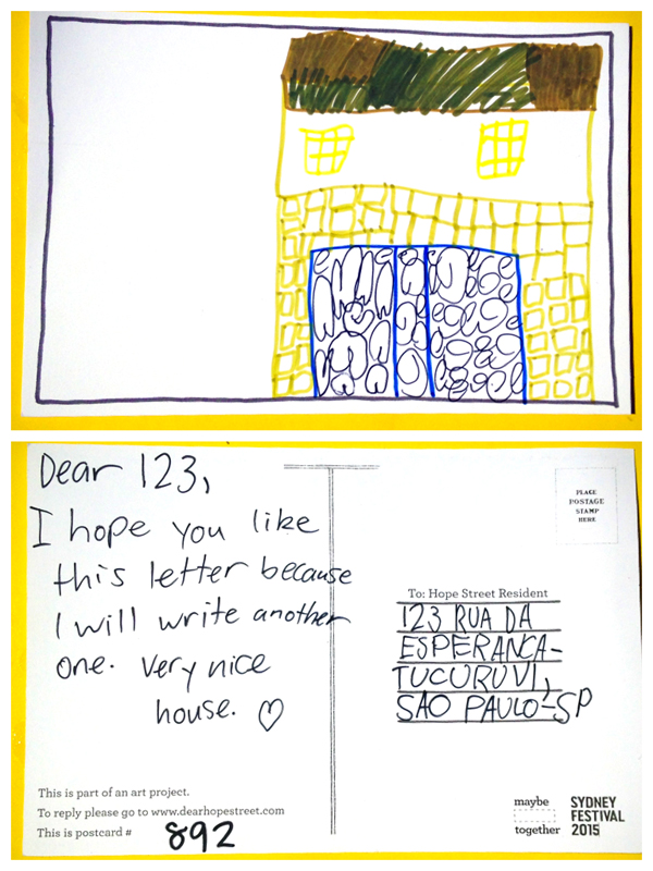 Translation: Caro 123, eu espero que você goste desta carta porque eu irei escrever outra. Muito legal a casa.