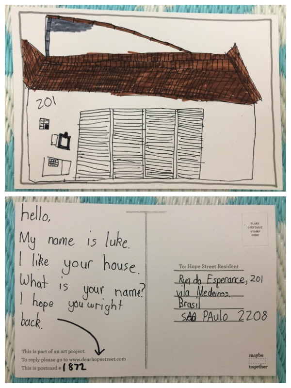Translation: Olá. Meu nome é Luke. Eu gosto da sua casa. Qual é o seu nome? Espero que você escreva de volta.